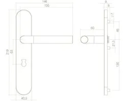 INTERSTEEL Deurkruk Paar Recht Op Schild Met WC-/badkamersluiting WC63/8 RVS Geborsteld