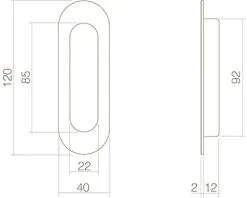 INTERSTEEL Schuifdeurkom Ovaal 120×40 Mm Mat Zwart