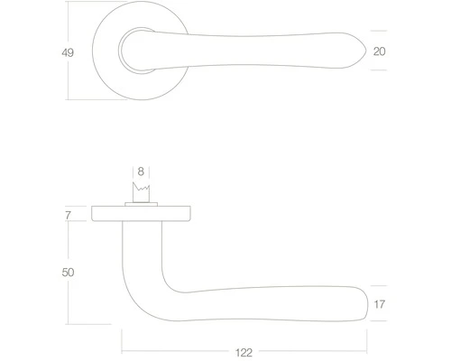 Deurkruk Saturnus op ronde rozet is uitgevoerd in chroom. Naderhand is deze kruk geborsteld, waardoor hij een mat uiterlijk krijgt. Deze deurkruk wordt per paar geleverd.